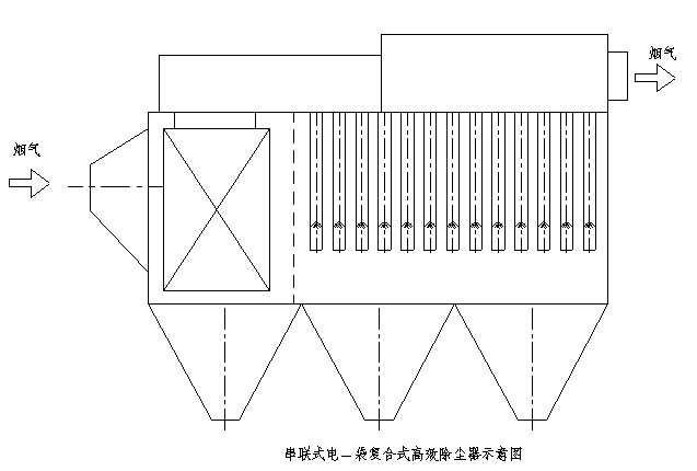 電─袋”收塵器,就是在收塵器的前部設(shè)置一個(gè)收塵電場(chǎng),發(fā)揮電收塵器收集80-90%粉塵的優(yōu)點(diǎn),收集煙塵中的大部分粉塵,而在收塵器的后部裝設(shè)濾袋,使含塵濃度低的煙氣通過(guò)濾袋,這樣可以大大降低濾袋的阻力,延長(zhǎng)噴吹周期,縮短脈沖寬度,降低噴吹壓力,從而大大延長(zhǎng)濾袋的壽命。